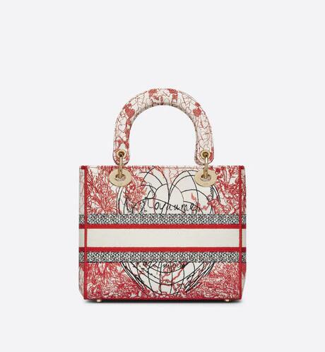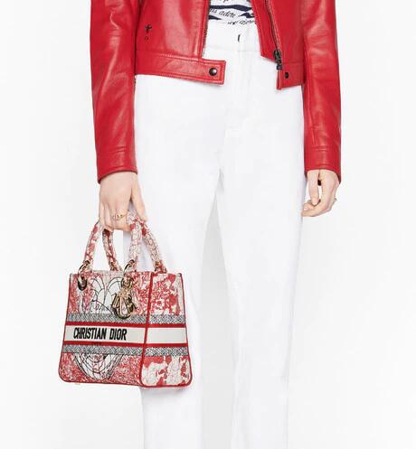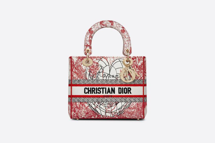 「amour (ディオールアムール)」カプセルコレクションより、クラシックなエレガンスとディオールのモダニティを併せ持つ「Lady D-Lite(レディ D-ライト)」バッグ。アーティスト ピエトロ・ルッフォに着想を得た、レッドとホワイトの「D-Royaume d'Amour (D-ロワイヨム ダムール)」モチーフの刺繍を全面にあしらいました。フロントに“クリスチャン・ディオール”シグネチャーをあしらい、ボリューム感のあるペールゴールドトーン メタルの“”チャームが魅力的なシルエットを引き立てます。幅広でリバーシブルの刺繍入りショルダーストラップは取り外すことができ、手提げスタイルはもちろん、ショルダーバッグやクロスボディバッグとしてもお使いいただけます。「ディオールアムール」の他のアイテムと組み合わせてもお楽しみいただける、ミディアムサイズのモデルです。