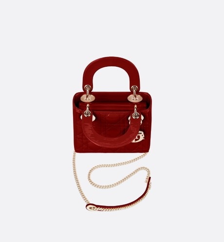 ムッシュ ディオールのビジョンであるエレガンスと美を体現する、“Lady (レディディオール)”ハンドバッグ。タイムレスな魅力とモダンさを兼ね備えたスタイリッシュでフェミニンなデザインのバッグ。チェリーレッドのパテントカーフスキン製のバッグ。ブランドらしさが際立つ、アイコニックな“Cannage(カナージュ)”のステッチを纏った至高のキルティング。ペールゴールドに光る、シグネチャーの“ディオール”のチャームがAラインのシルエットを引き立てます。ミニサイズ。取り外し可能なチェーン付き。