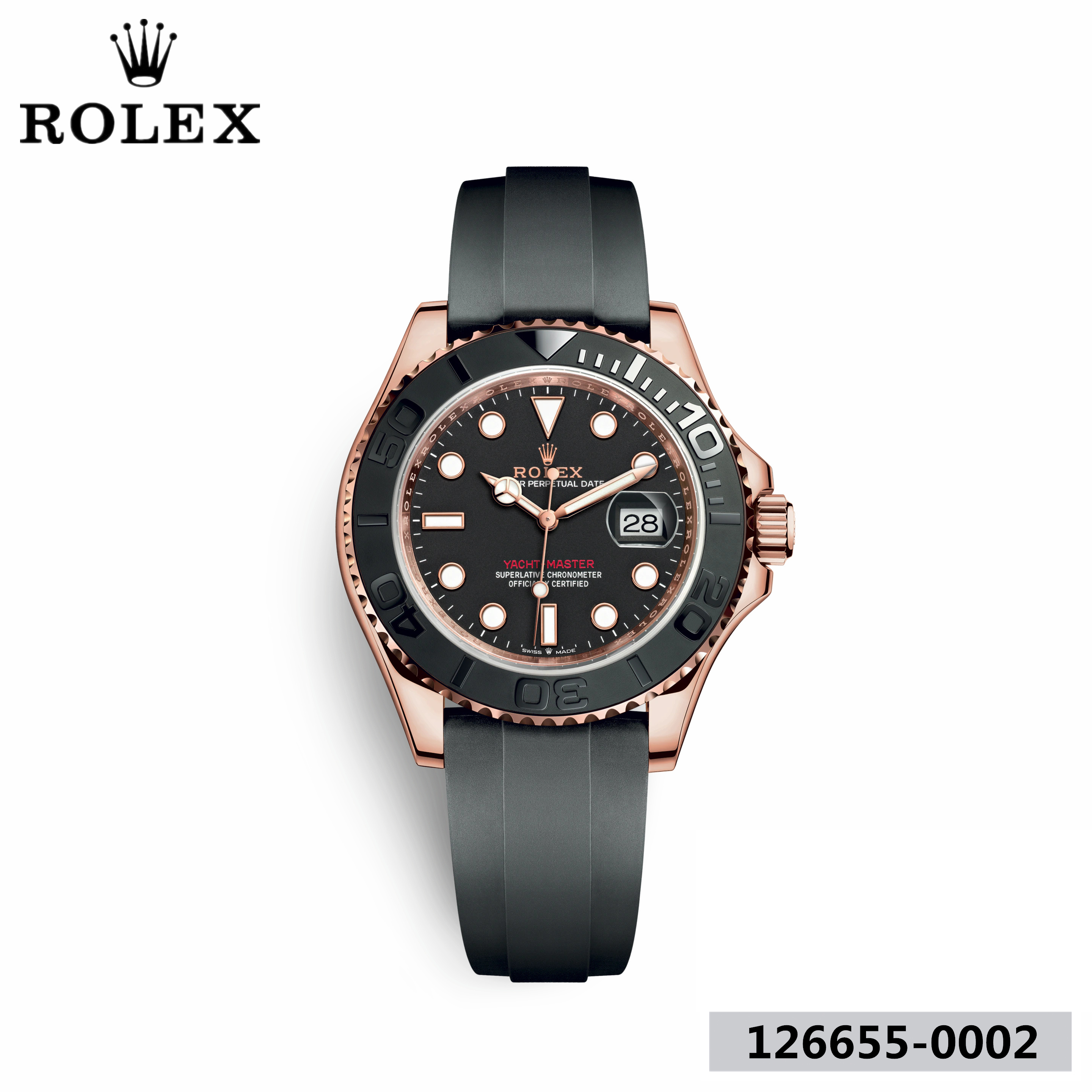 ロレックスが開発・特許を取得したヨットマスターの新しいオイスターフレックス ブレスレットは メタル ブレスレットとは異なるスポーティーな魅力を放つ。ブレスレットは柔軟性のあるチタン・ニッケル合金製ブレードで 時計のケースとセーフティキャッチ付オイスターロッククラスプに接続されている。このブレードは環境からの影響を受けにくく 極めて耐久性に優れる高性能ブラックエラストマーで覆われ 着用者の手首にしっかりとフィットする。装着感を高めるために オイスターフレックス ブレスレットの内部には特許を取得した縦方向クッションシステムが備わり 時計を手首で安定させる。ブレスレットには18 ct エバーローズゴールドの セーフティキャッチ付オイスターロッククラスプが装備されている。 また ロレックスがデザインし 特許を取得したロレックスグライドロック エクステンションシステムも搭載されています。この独創的なメカニズムは クラスプカバーの裏のラック(刻み)により 工具を使わずにブレスレットの長さを約2.5mm単位で最大約15mm延長することができます。